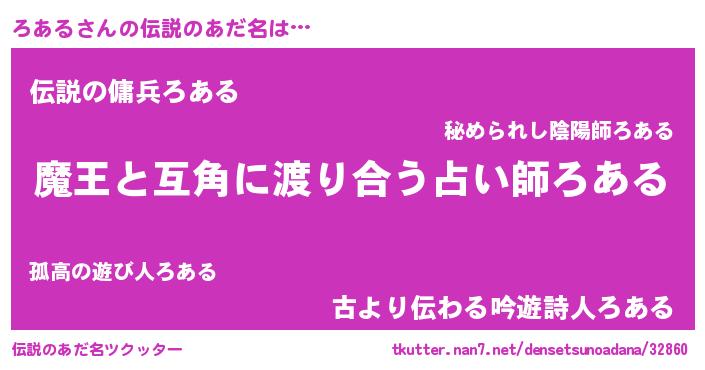 | 男性向けラノベタイトル風あだ名 | 『転生したらろあるだった件』 |