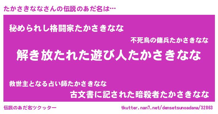 | 意味不明あだ名 | 『自称たかさきなな』 |
