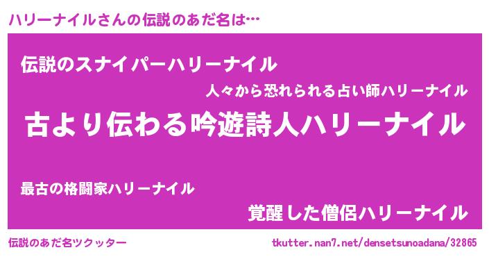| ヒーロー風カッコイイあだ名 | 『ネオハリーナイル』『暗黒騎士ハリ』 |