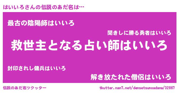 | ヒーロー風カッコイイあだ名 | 『仮面ハイダー』『天空の使者はいいろ』 |