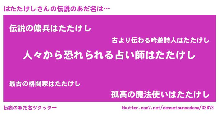 | ヒーロー風カッコイイあだ名 | 『正義の使者はたたけし』『仮面ハタダー』 |