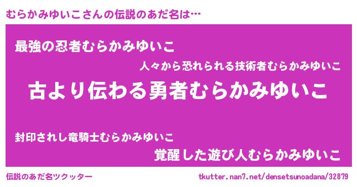 | ヒーロー風カッコイイあだ名 | 『ネオムラカミユイコ』『幻影騎士ムラ』 |