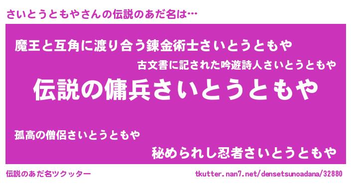 | 胡散臭い通販商品みたいなあだ名 | 『必ず成功する水晶球…その名も「さいとうともや」』 |