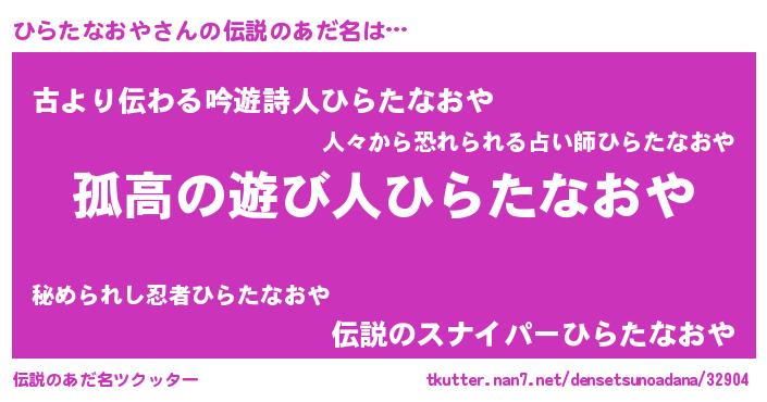 | 意味不明あだ名 | 『とにかく怪しいひらたなおや』 |