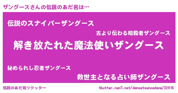 | ヒーロー風カッコイイあだ名 | 『魔戒騎士ザン』『スーパーザングース』 |