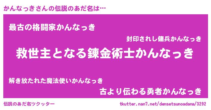 | ヒーロー風カッコイイあだ名 | 『慈愛の使者かんなっき』『仮面カンダー』 |