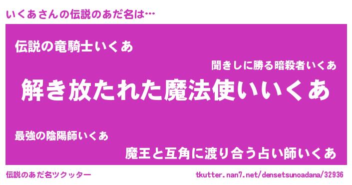 | ヒーロー風カッコイイあだ名 | 『幻影騎士イク』『スーパーイクア』 |