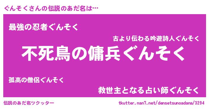 | 男性向けラノベタイトル風あだ名 | 『転生したらぐんそくだった件』 |