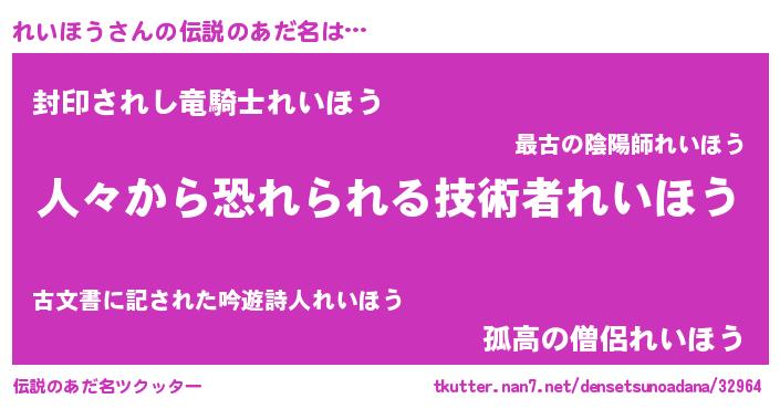 | ヒーロー風カッコイイあだ名 | 『正義の使者れいほう』『幻影騎士レイ』 |