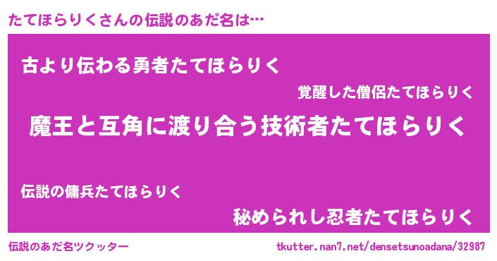 | 意味不明あだ名 | 『自称たてほらりく』 |