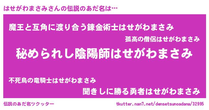 | 意味不明あだ名 | 『自称はせがわまさみ』 |