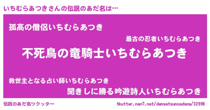 | ヒーロー風カッコイイあだ名 | 『スーパーイチムラアツキ』 |