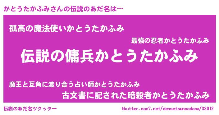 | 男性向けラノベタイトル風あだ名 | 『カトウタカフミスレイヤー』 |