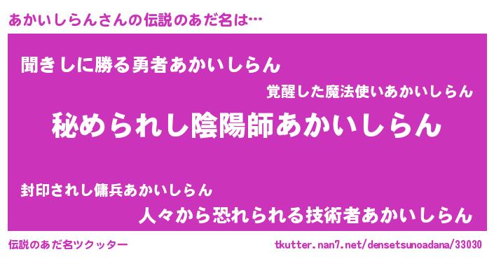 | 男性向けラノベタイトル風あだ名 | 『アカイシランスレイヤー』 |