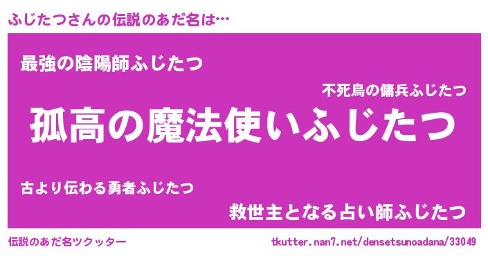 | 胡散臭い通販商品みたいなあだ名 | 『信頼と実績のサプリメント…その名も「ふじたつ」』 |