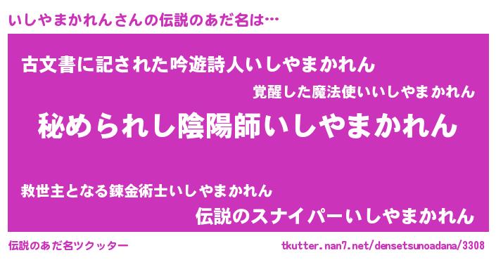 | 意味不明あだ名 | 『自称いしやまかれん』 |