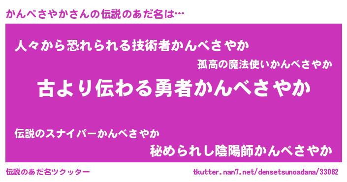 | ヒーロー風カッコイイあだ名 | 『ネオカンベサヤカ』『暗黒騎士カン』 |