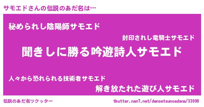| 意味不明あだ名 | 『永久保存サモエド』『自称サモエド』 |