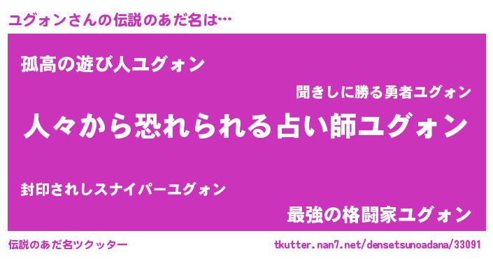 | ヒーロー風カッコイイあだ名 | 『正義の使者ユグォン』『暗黒騎士ユグ』 |