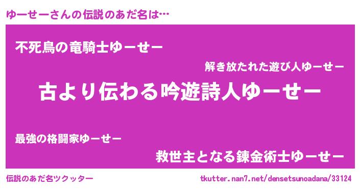 | ヘコむあだ名 | 『ゆーせー(笑)』『ゆーもー』 |