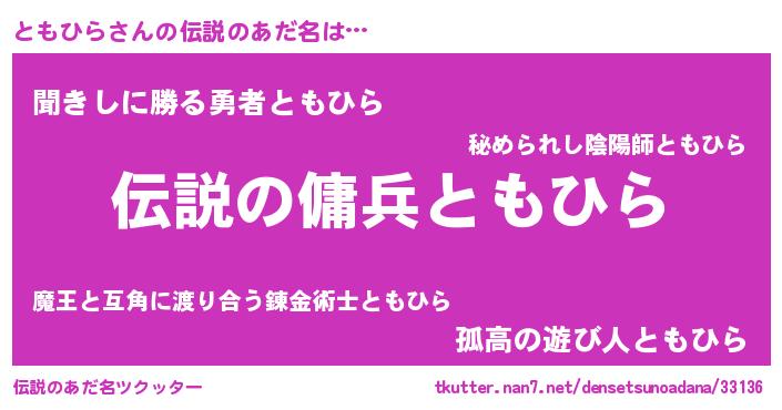 | 男性向けラノベタイトル風あだ名 | 『トモヒラスレイヤー』『ともひらの憂鬱』 |
