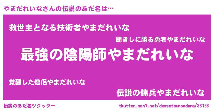 | ファンタジー風あだ名 | 『エターナルヤマダレイナー』 |