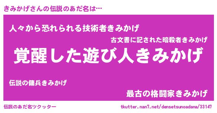 | ヒーロー風カッコイイあだ名 | 『仮面キミダー』『暗黒騎士キミ』 |