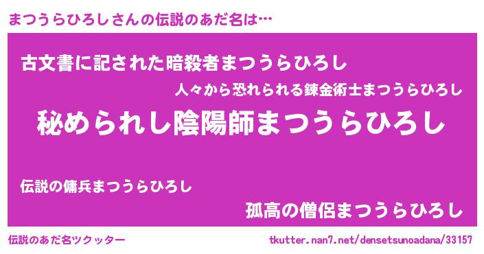 | 意味不明あだ名 | 『自称まつうらひろし』 |