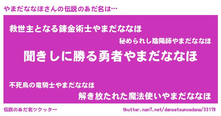 | 女子向けラノベタイトル風あだ名 | 『異世界で失敗しない100のやまだななほ』 |