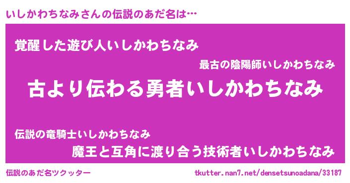| 意味不明あだ名 | 『永久保存いしかわちなみ』 |