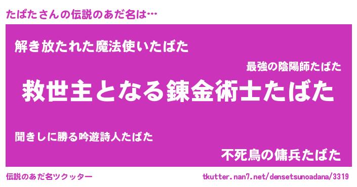 | 意味不明あだ名 | 『眠気覚ましガムたばた味』『自称たばた』 |