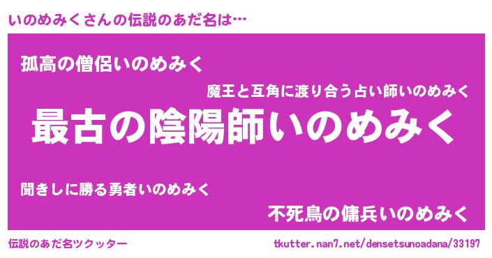 | ファンタジー風あだ名 | 『ゼイノトゥ』『エターナルイノメミクー』 |
