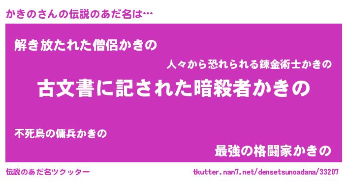| 男性向けラノベタイトル風あだ名 | 『この素晴らしい世界にかきのを!』 |