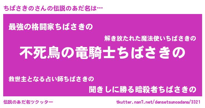 | ファンタジー風あだ名 | 『チバフェル』『ゼチバトゥ』 |