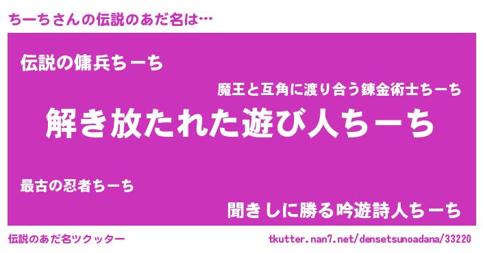| ヒーロー風カッコイイあだ名 | 『魔戒騎士チー』『仮面チーダー』 |