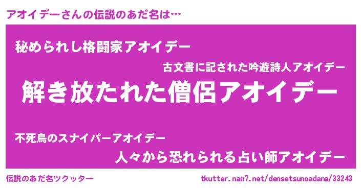 | ヒーロー風カッコイイあだ名 | 『サイバー戦士アオイデー』 |
