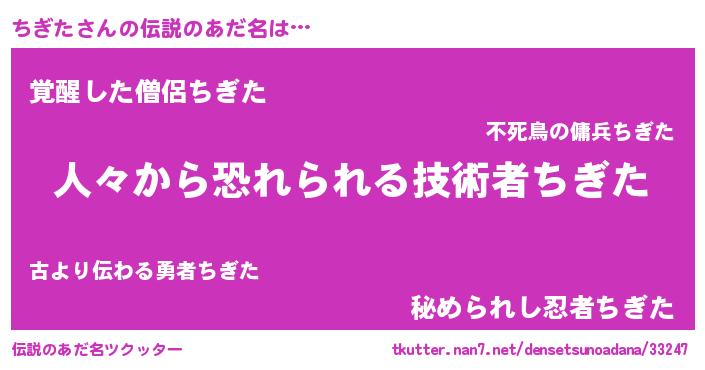 | ヒーロー風カッコイイあだ名 | 『正義の使者ちぎた』『最強戦士チギタ』 |