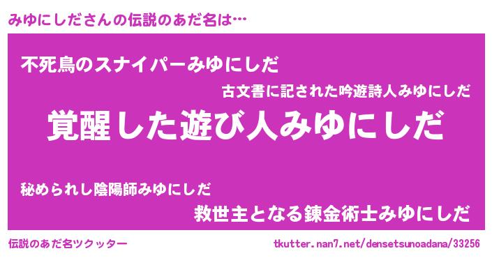 | ポケモン風あだ名 | 『ヒミユニシダ』『ミユゴンZ』 |