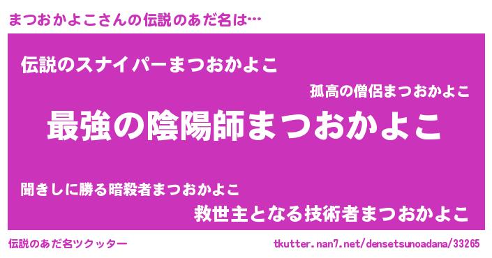 | 意味不明あだ名 | 『ヨモギ科まつおかよこ属』 |
