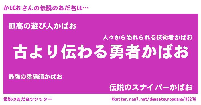 | 意味不明あだ名 | 『永久保存かばお』『ペロリンかばお』 |