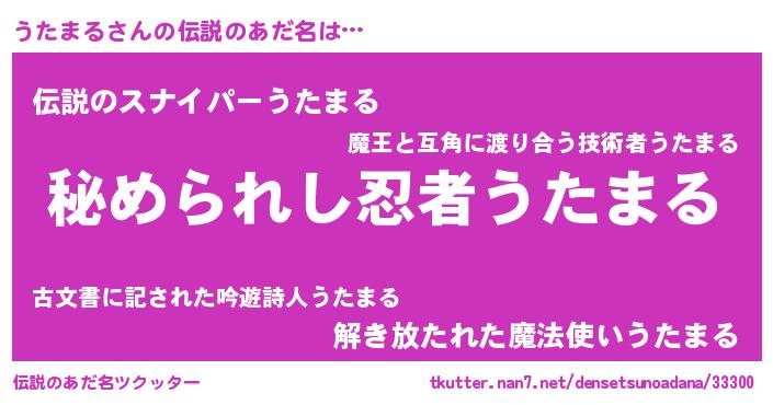 | ヒーロー風カッコイイあだ名 | 『ウルトラうたまるマン』『幻影騎士ウタ』 |