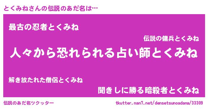 | 男性向けラノベタイトル風あだ名 | 『おまえをオタクにしてやるから、俺をとくみねにしてくれ! 』 |