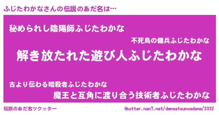 | 意味不明あだ名 | 『とにかく怪しいふじたわかな』 |