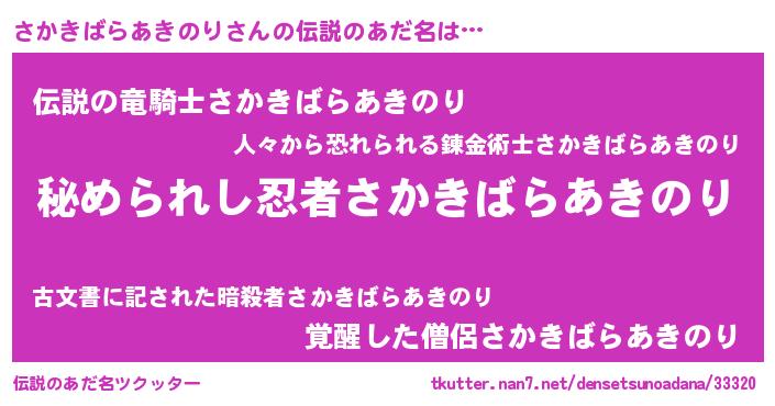 | ファンタジー風あだ名 | 『エターナルサカキバラアキノリー』 |