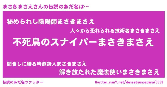 | 胡散臭い通販商品みたいなあだ名 | 『モテモテ間違いなし霊験あらたかなお札…その名も「まさきまさえ」』 |