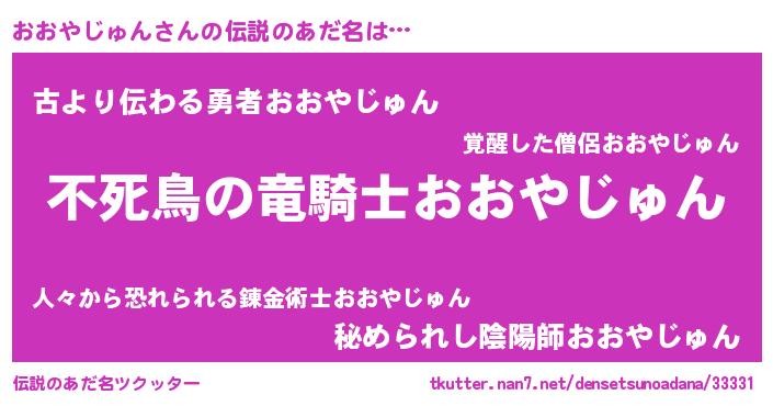 | 男性向けラノベタイトル風あだ名 | 『オオヤジュンアートオンライン』 |