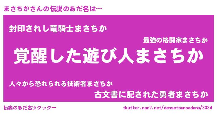 | 男性向けラノベタイトル風あだ名 | 『まさちかの嫁は女の子じゃないと思った?』 |