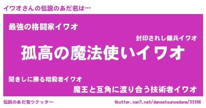 | 男性向けラノベタイトル風あだ名 | 『魔弾の王とイワオ』『緋弾のイワオ』 |