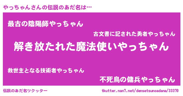 | 男性向けラノベタイトル風あだ名 | 『やっちゃんに滅ぼされるだけの簡単なお仕事です』 |