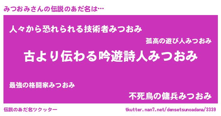 | ヘコむあだ名 | 『みつおみ(笑)』『みつにー』 |